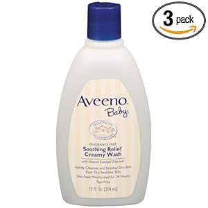 Aveeno Baby soothing relief Cream Wash, 12 Fluid Ounce bottles-Pack of 3 my baby started developing patch of eczema, and after searching a bit about it online, I decided to try a baby washing without perfume. I started using this fragrance product, Aveeno Baby soothing relief Cream Wash, free application, as well as Cetaphil cream after bathing and washing clothes in Dreft. The combination of the three cleared right up.